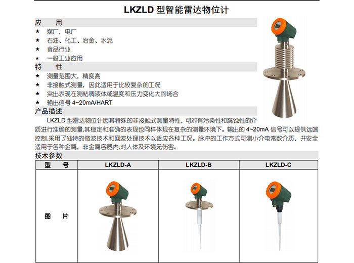 您現在的位置:首頁  > 產品展示  > LKZLD型智能雷達物位計