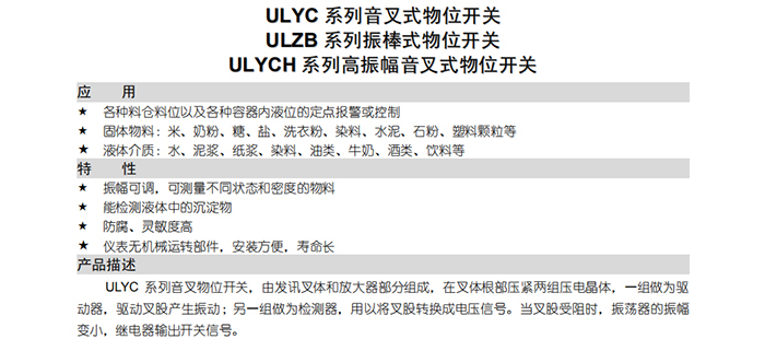 ULYC系列音叉式物位開關