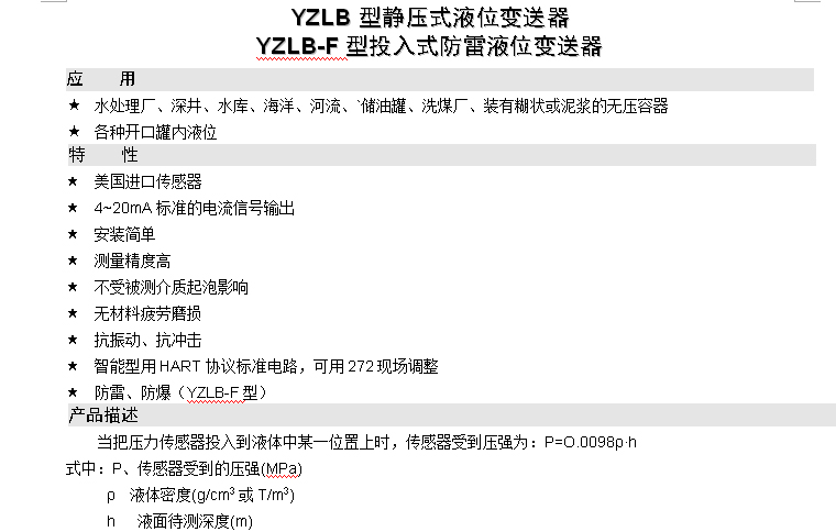 您現在的位置:首頁  > 產品展示  > YZLB型靜壓式/YZLB-F型投入式防雷液位變送器